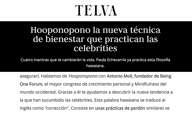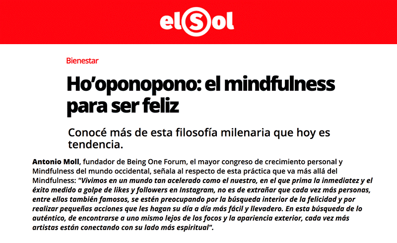 Shaken by a severe depression, Antonio Moll left his successful business career in Spain. Months later, he connected deeply with the teachings of Ho’oponopono and founded the Being One Forum event.